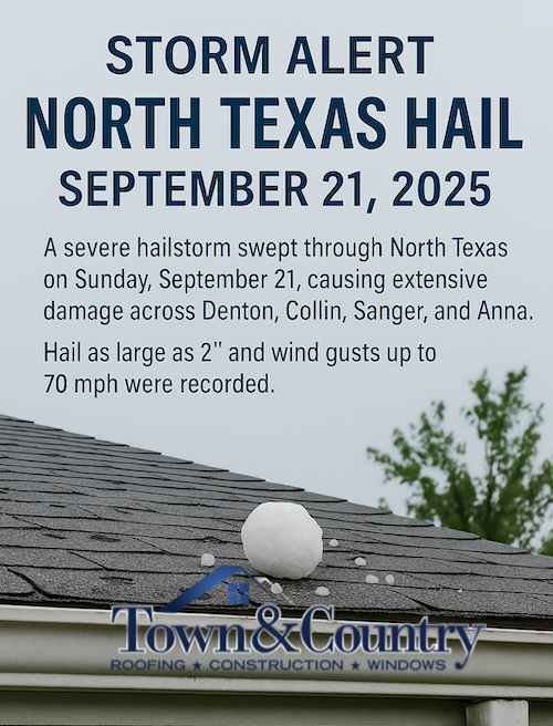 As your trusted roofing partner in North Texas, Town & Country Roofing is committed to helping homeowners recover as quickly and safely as possible after storms like this. Here’s what you should know — and what to do next.